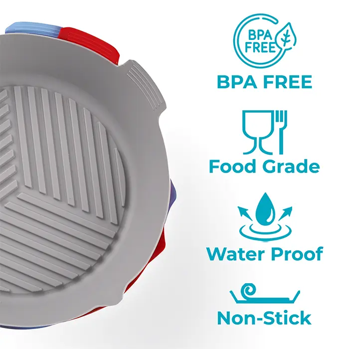 1. π…πŽπŽπƒ-𝐆𝐑𝐀𝐃𝐄 𝐀𝐒𝐒𝐔𝐑𝐀𝐍𝐂𝐄: These food-safe silicone air fryer liner are ideal for your air fryer. Free from harmful chemicals like PVC or BPA, they come in three attractive colors and fit most air fryers with 8-inch upper and 7-inch lower edges.